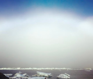 An ice bow, also called a white rainbow, I saw one day out walking the coastal Arctic beach in the village of Wainwright. I was so stunned when I saw it that I fell back against the beach wall and stared up at this strikingly beautiful weather phenomenon.